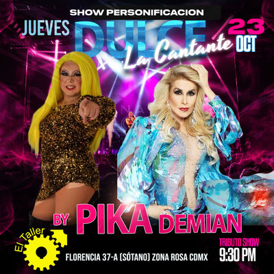 9:30 pm. Show Drag Con PIKA DEMIÁN Tributo a DULCE LA CANTANTE.