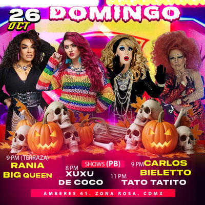 Domingo 26 de octubre: NO COVER DE 6 a 7 pm, después $50.