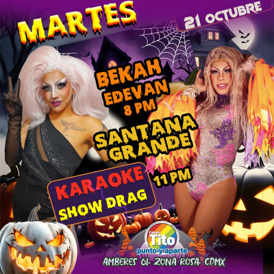 10:30 pm. show Drag & karaoke, con Drag TATO TATITO.